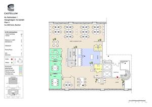 Kontoret Kontoret om 800 kvm kvm är anpassad för ca 40 medarbetare. Den flexibla ytan är fördelad som reception, öppet kontorslandskap, mötesrum i ol...